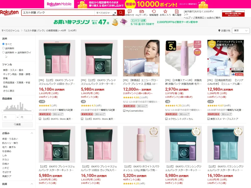 楽天やAmazonでもEKATO 炭酸パックは販売されていますが、公式サイト以外からの購入には注意が必要です。